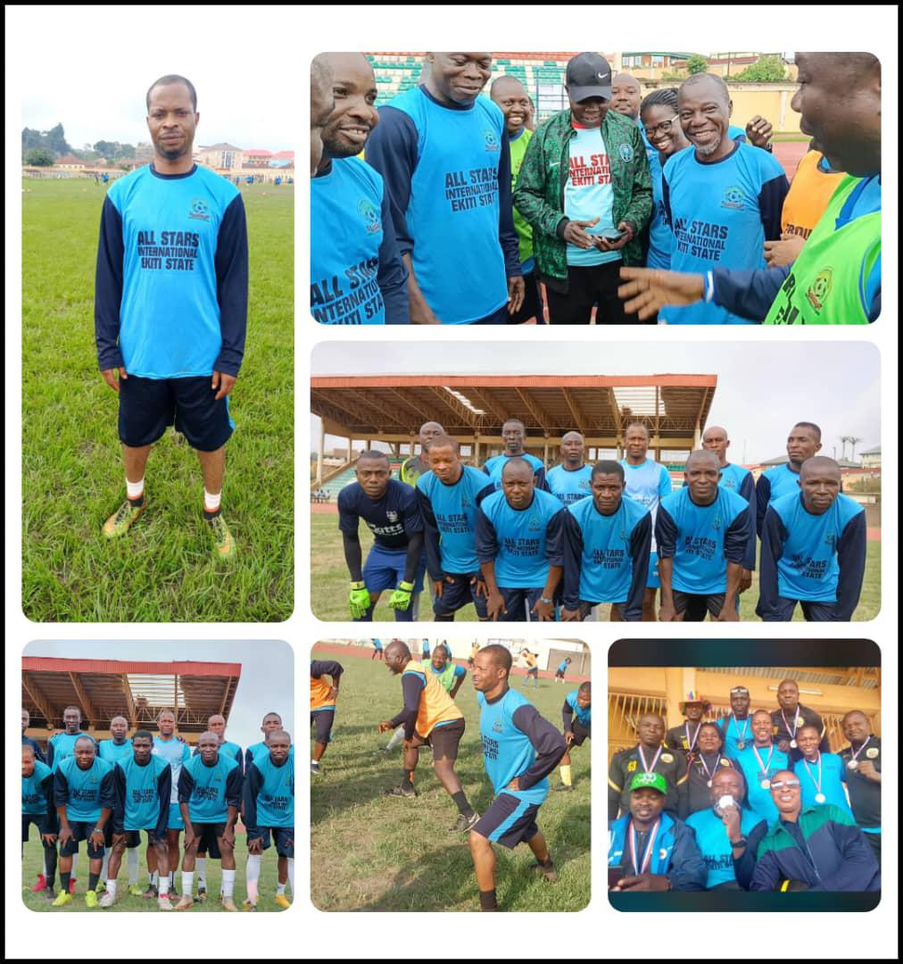 The All Stars while identifying with the State government’s quest to ensure the football pitch of the Oluyemi Kayode Stadium in Ado Ekiti regains it’s green grass which has become patchy and grey due to the unfavorable weather condition promised to always support the efforts of the Sports Development office headed by the Technical Advisor, Dr Olusola Osetoba at reposition Sports in Ekiti State in line with the vision of the State Governor, Mr Biodun Oyebanji.