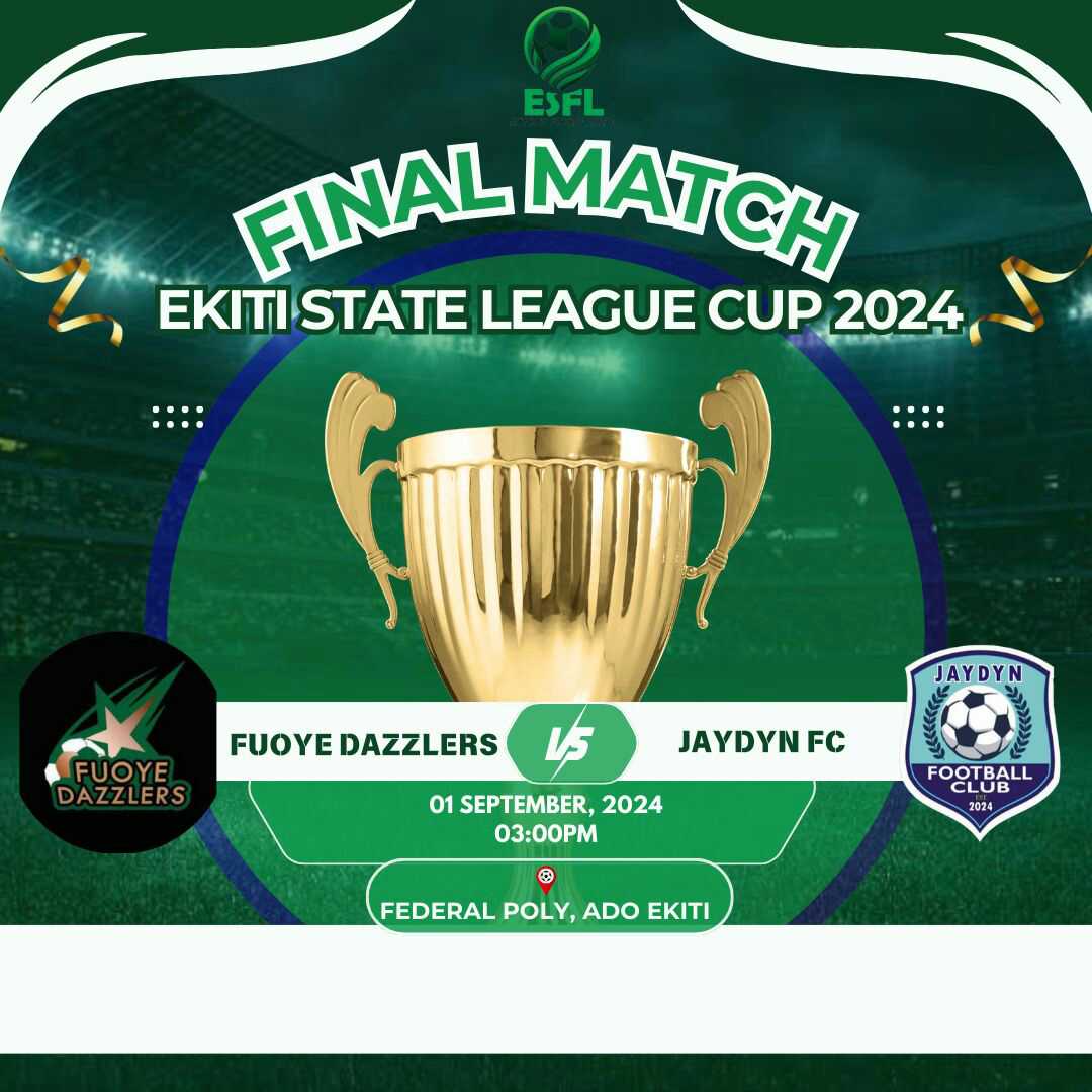 SPORT Ekiti State Football League Super 8 Final: Fuoye Dazzlers Tackle Jaydyn FC in Decisive Clash Akintomiwa Bolarinwa September 7, 2024