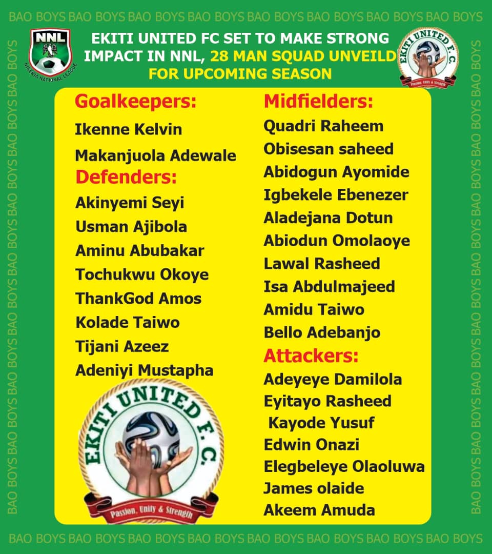 April 10, 2025 Who Made the Cut? Ekiti United Reveal 27-Man Squad, Unveil Jersey Ahead of NLO Kickoff