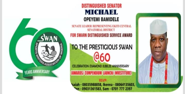 SPORT SWAN at 60: Ekiti Governor, Oyebanji, Senator Bamidele,Oba Alabi,Others honoured with National awards